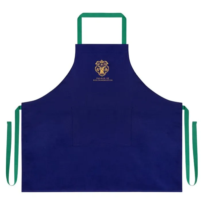 Protect Your Clothes While You Cook Up Your Royal Biscuits, Cakes And Other Bakes. This Stylish Apron Features The Scottish Coat Of Arms On Deep Blue Cotton With Contrasting Green Apron Ties.