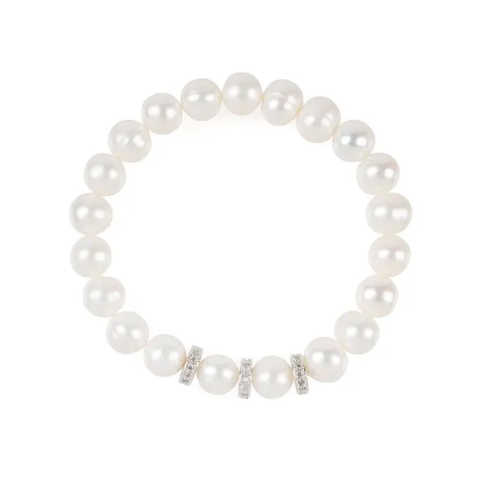 An Elegant Freshwater Pearl Bracelet With A Delicate Crystal Detail.