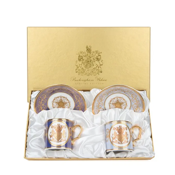 Hand Finished In 22 Carat Burnished Gold, This Set Of Two Coffee Cups And Saucers Is Inspired By A Custard Cup And Saucer Depicting The Hanoverian Coat Of Arms From The Collection Of Adolphus, Duke Of Cambridge (The Seventh Son Of George Iii).