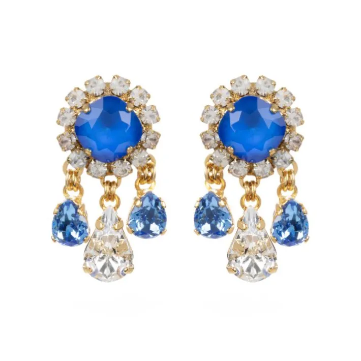 Inspired By The Timeless Pieces Worn By Her Majesty The Queen. Make A Statement With Striking Blue, Hand-Painted Crystals With A Clear Tear Drop Crystal.